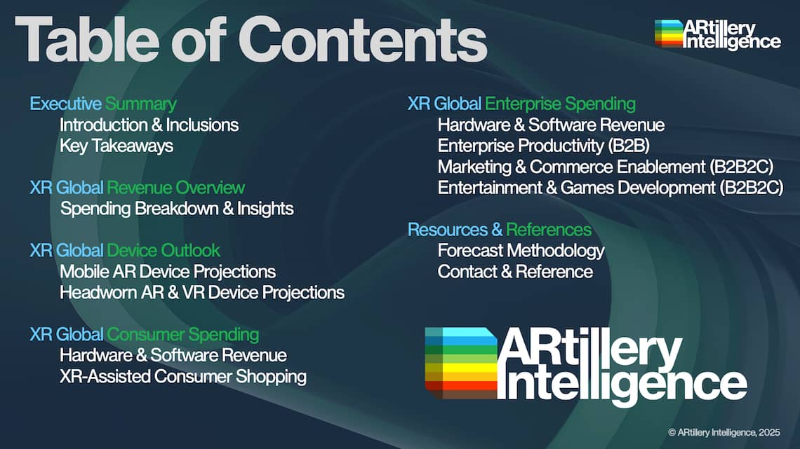 ARtillery Intelligence follows disciplined best practices in market sizing and forecasting, developed and reinforced through its principles’ 20 years in research and intelligence in tech sectors. This includes the past 10 years covering AR & VR as a primary focus.