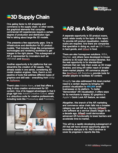 Though AR hasn’t demonstrated the world-changing capabilities that were touted in the technology’s circa-2017 hype cycle, it’s finding success in specific areas. Those include enterprise productivity and brand marketing, both of which were examined in recent ARtillery Intelligence reports like this one.